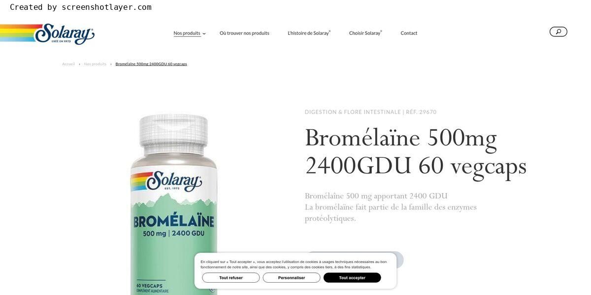 | Bromélaïne (de tige d'ananas), apportant 2400 GDU/g | 500 mg |