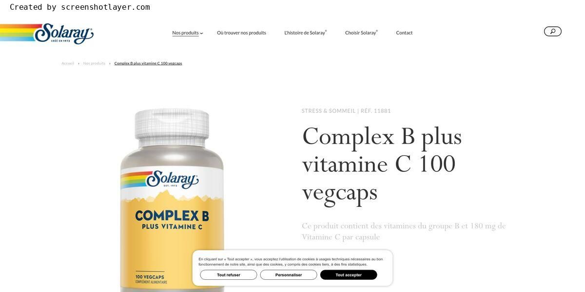 Ce produit contient des vitamines du groupe B et 180 mg de Vitamine C par capsule