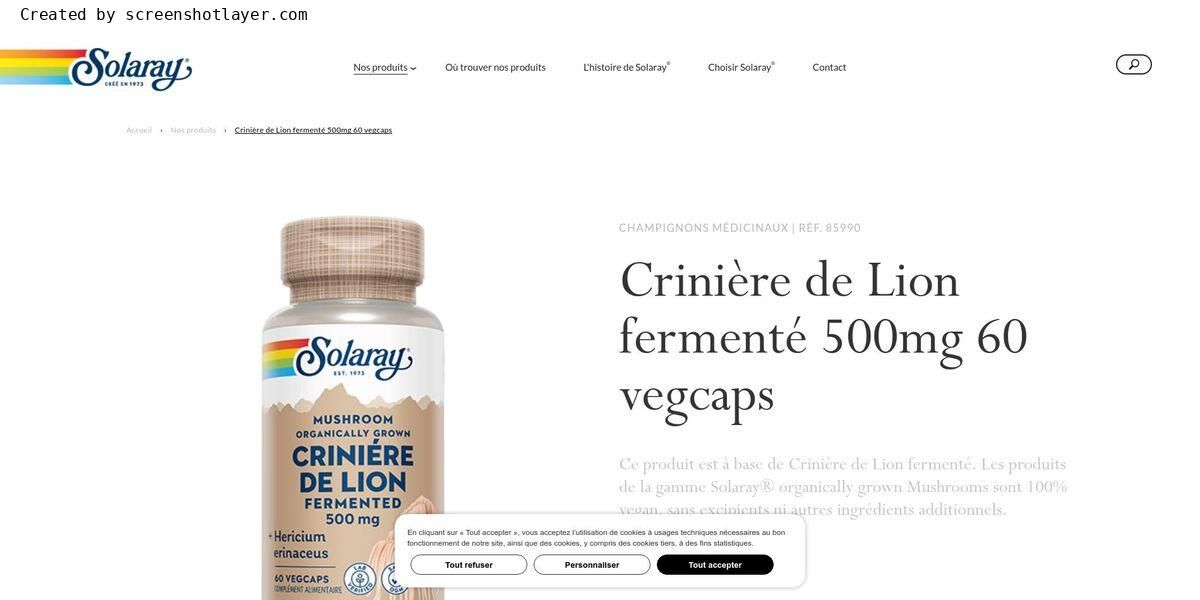 Ce produit est à base de Crinière de Lion fermenté. Les produits de la gamme Solaray® organically grown Mushrooms sont 100% vegan, sans excipients ni autres ingrédients additionnels.