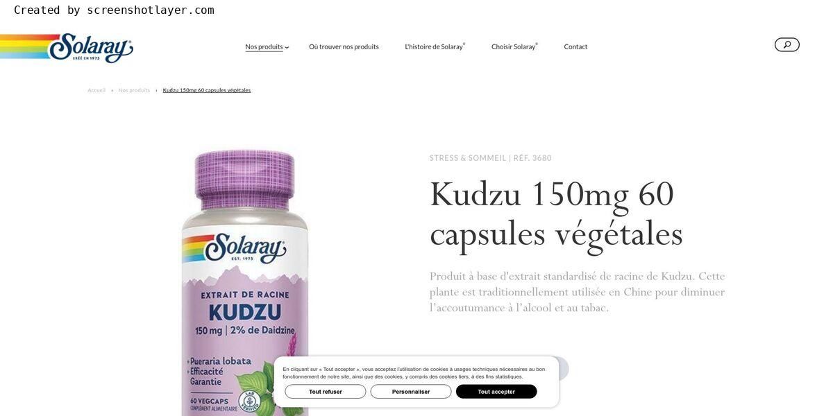 Produit à base d'extrait standardisé de racine de Kudzu. Cette plante est traditionnellement utilisée en Chine pour diminuer l’accoutumance à l’alcool et au tabac.