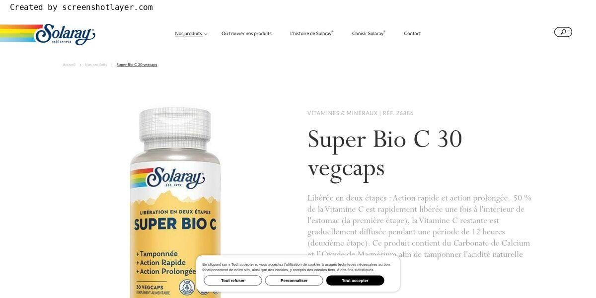 Les vitamines SOLARAY® sont, sans exception, d’origine naturelle et de la plus haute qualité. Nous les retrouvons souvent combinées à des ingrédients synergiques (euxmêmes également d’origine naturelle) pour augmenter la biodisponibilité du produit. SOLARAY® a mis en place un système de libération retardée en deux étapes pour les vitamines hydrosolubles. Pendant la première étape, 50% du produit se libère rapidement dans l’estomac, tandis que pour la deuxième étape, le reste du produit se libère de manière graduelle pendant environ 12 heures.