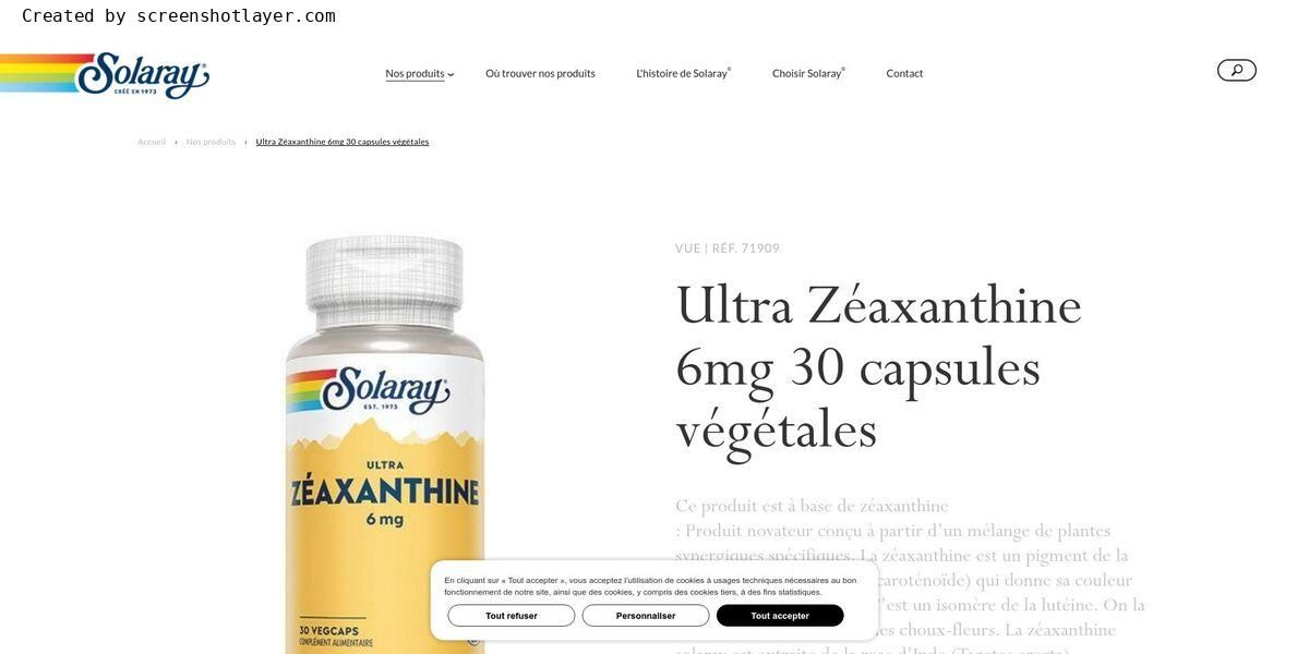 - : Produit novateur conçu à partir d’un mélange de plantes synergiques spécifiques. La zéaxanthine est un pigment de la famille des xanthophylles (caroténoïde) qui donne sa couleur jaune aux grains de maïs. C’est un isomère de la lutéine. On la retrouve notamment dans les choux-fleurs. La zéaxanthine solaray est extraite de la rose d’Inde (Tagetes erecta).