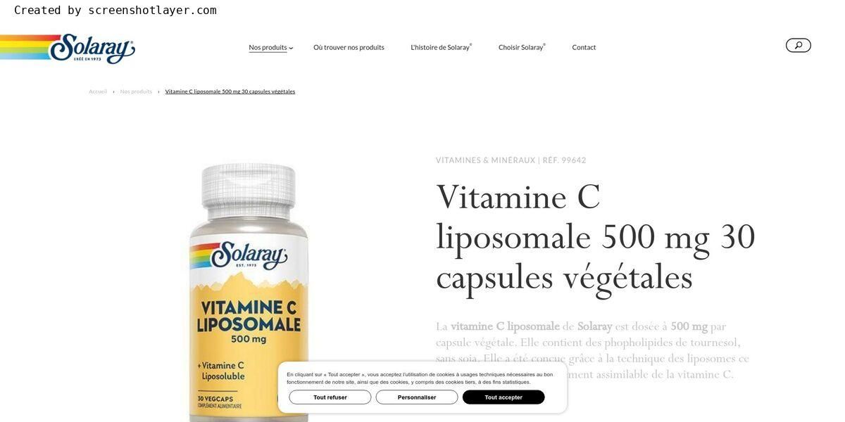 La vitamine C liposomale de Solaray est dosée à 500 mg par capsule végétale. Elle contient des phopholipides de tournesol, sans soja. Elle a été conçue grâce à la technique des liposomes ce qui permet un forme hautement assimilable de la vitamine C.