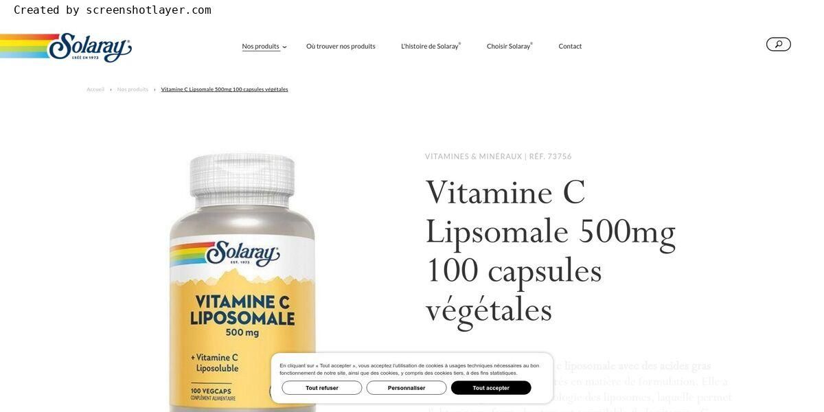 liste des ingrédients : Vitamine C (L-acide ascorbique), mélange liposomal (phophatidylcholine de tournesol, acide palmitique, acide oléique). Enveloppe de capsule : cellulose végétale , agente de charge : cellulose végétale.